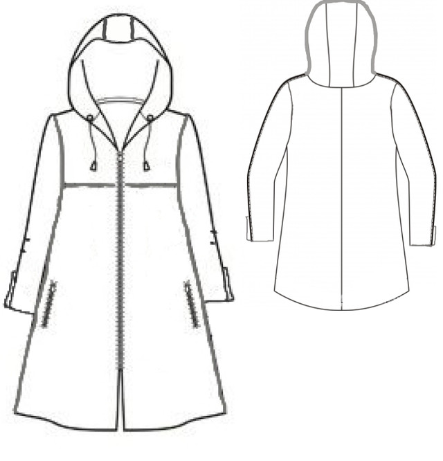 Сама модель - це якийсь мікс між курточкою та мініплащем. Низ виробу рівний.