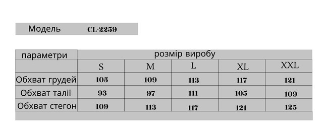 Таблиця розмірів: