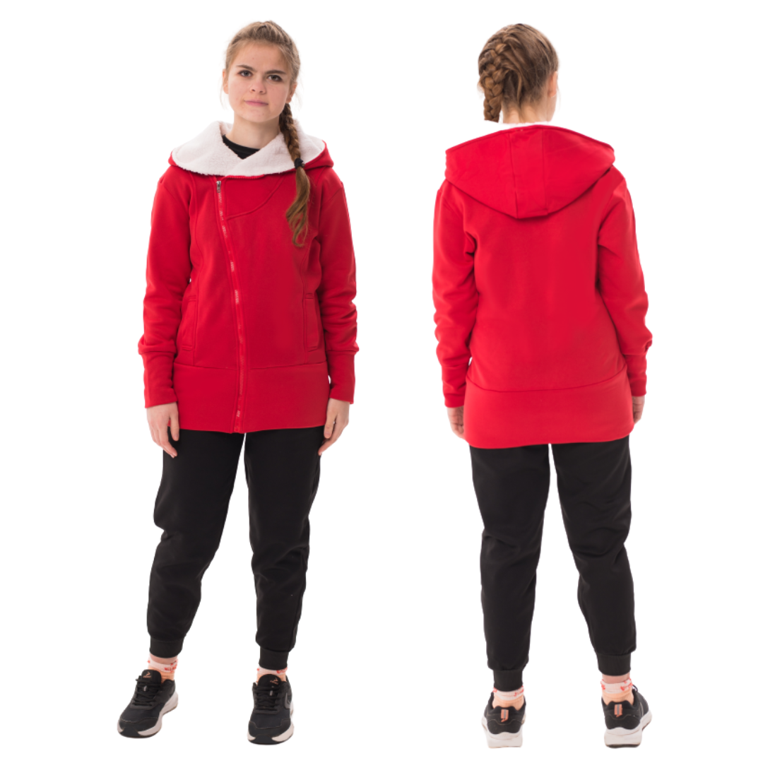 Спортивний червоний костюм жіночий ДВІЙКА з капюшоном